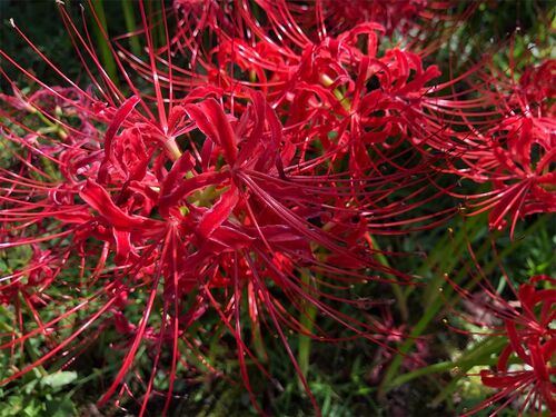 お彼岸の前、今年も西方寺の彼岸花が咲きました! こんなにきれいなのに、墓場の花として忌み嫌われてるのは、かわいそう 黄色のオーレア! 花びらのフリルが多いタイプ 木漏れ日がチラチラと差しで、ますますきれい おしべとめしべの長いこと! 蝶々が数匹…